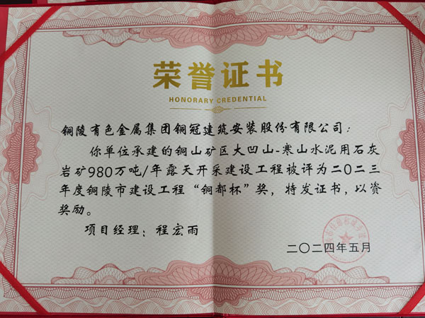 • 銅陵市勞動(dòng)競賽優(yōu)勝單位
